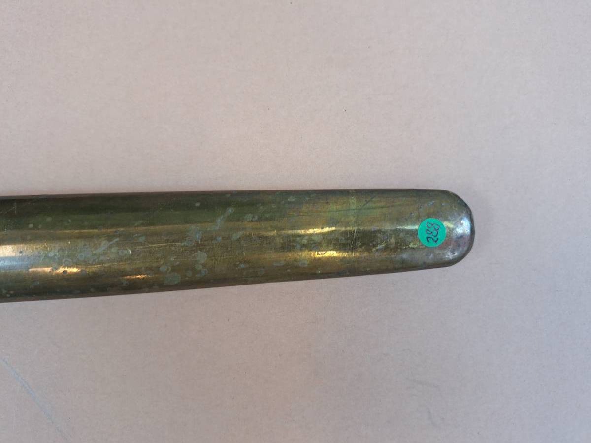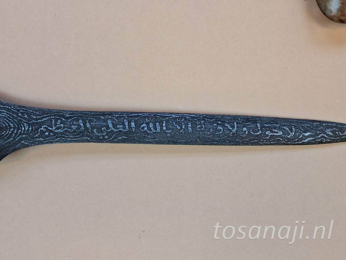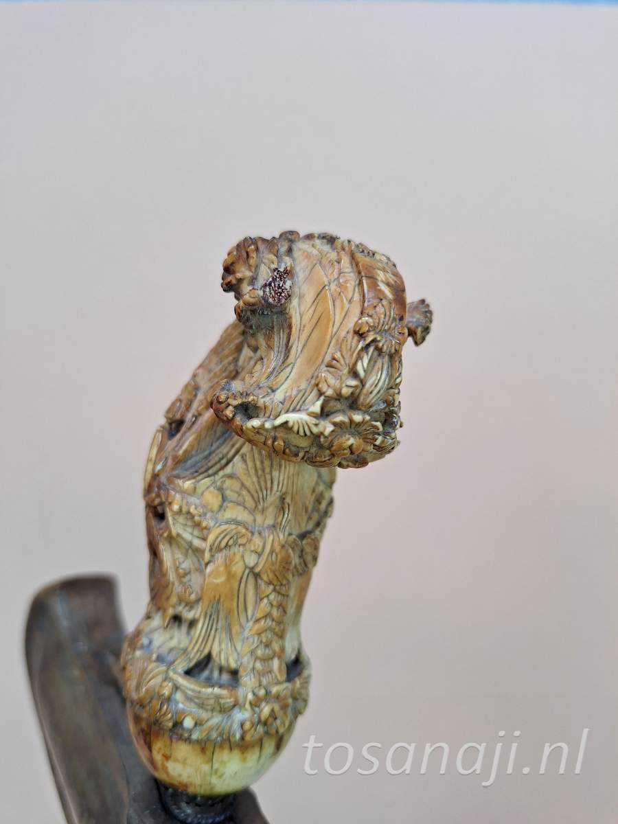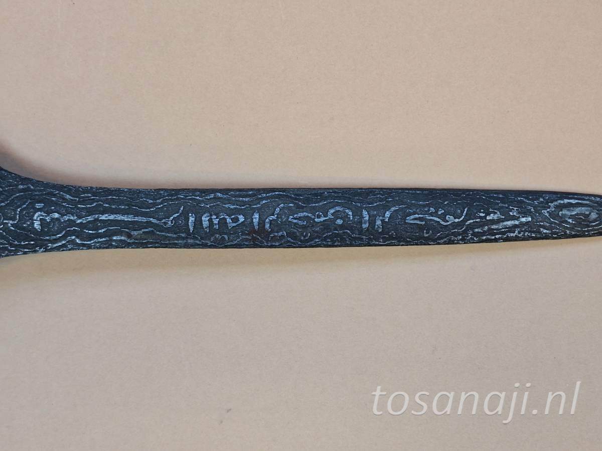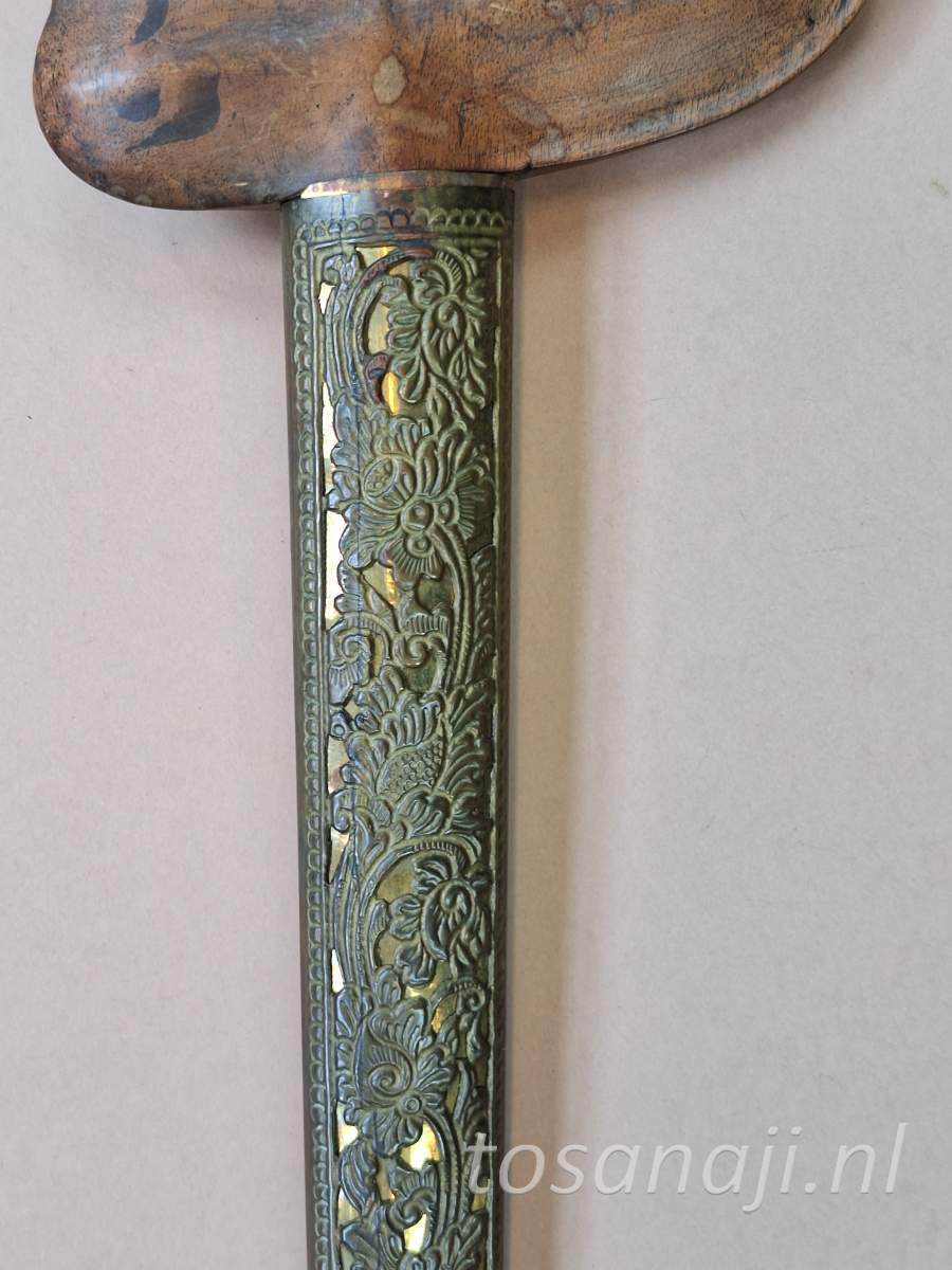 K288 Antieke keris van Madura. Een TOP greep type DONORIKO van olifanten ivoor. Een rechte pamorkling met dapur BROJOL, waarschijnlijk tangguh Madura begin 19e eeuw. Een kling waarin een Kul Buntet en ook Koran verzen zijn geëtst.