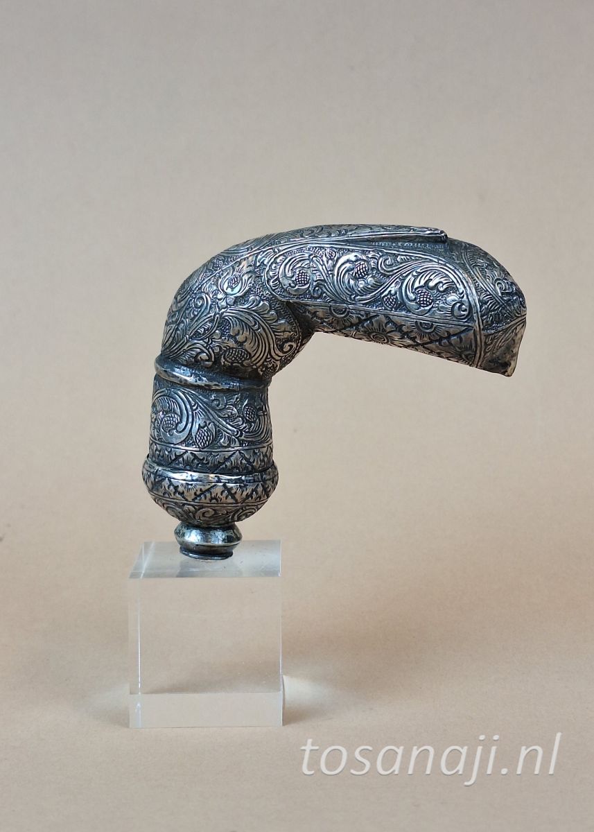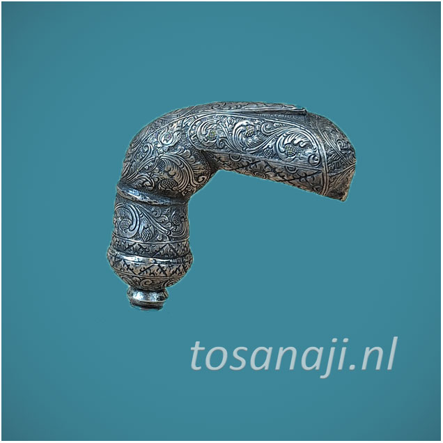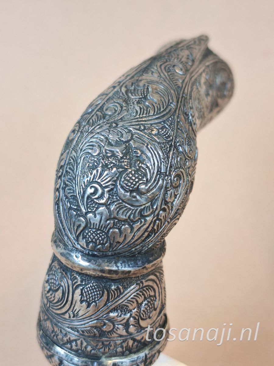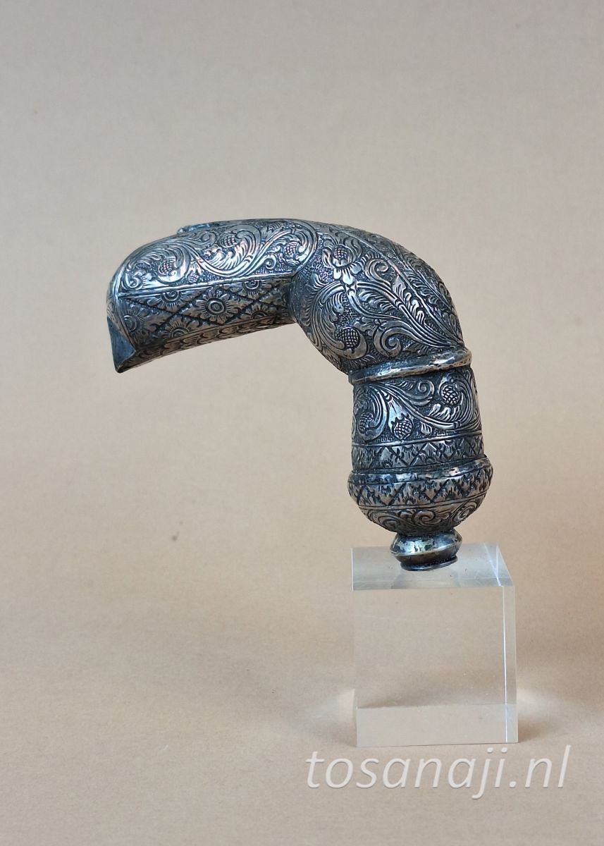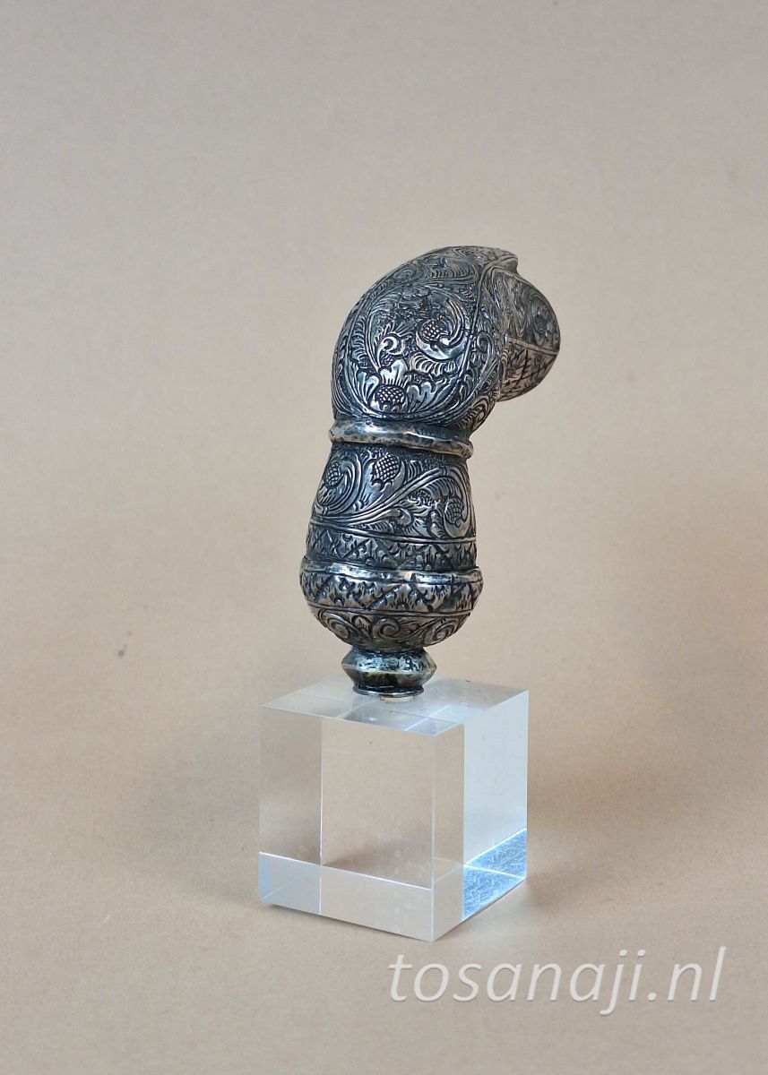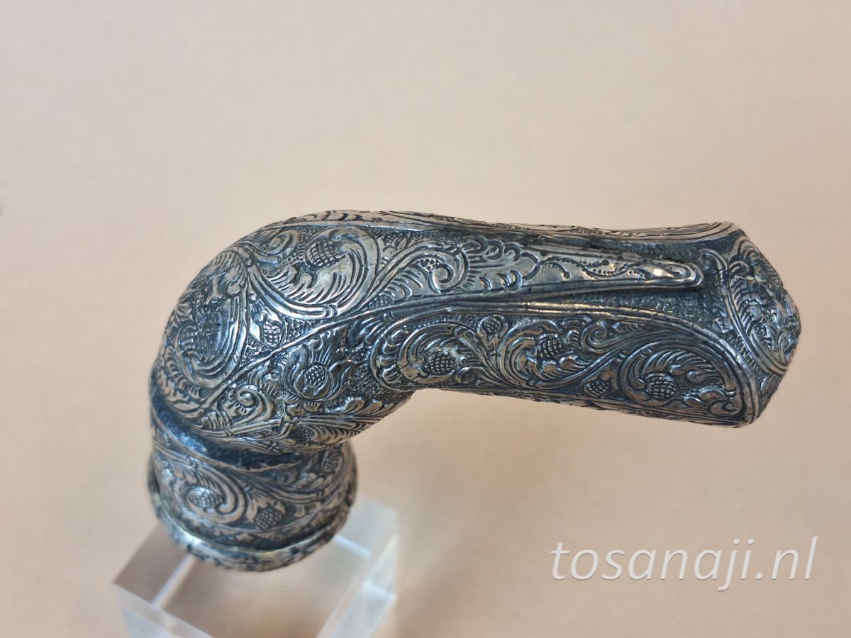 KG Kerisgreep van Minang Kabau van bewerkt zilver met florale motieven.