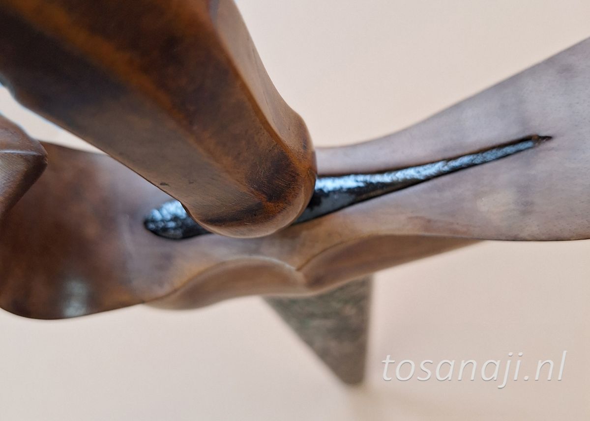 K304 keris met een aankleding van Solo. De wrangka (schip) gesneden uit Trembalo hout met een mooie chattoyance. Een pamorkling met 13 luk, waarschijnlijk uit de 18e eeuw. Het pamor is Sodo Saler waarvan wordt geloofd dat het de eigenaar beschermd tegen kwaadwillenden en onheil.